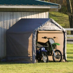 Avec cet abri souple de 9m², vous disposerez toujours d’un espace fermé pour le rangement de votre outillage de jardin, votre bois de chauffage, vos deux-roues, brouette ou pour protéger vos biens des intempéries. Il pourra également contenir un quad ou une réserve de paille pour nourrir vos chevaux pendant la saison hivernale. Cet abri démontable fabriqué par Shelter Logic se monte et se démonte rapidement, et s’adapte à tous vos besoins. Il peut être utilisé de façon ponctuelle ou tout au long de l’année, et comme il est démontable il ne requiert aucun permis de la mairie. Lorsque vous ne vous en servez plus, vous pourrez le remiser et disposer de l’espace libéré dans votre jardin.