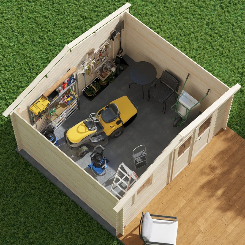Construit en madriers épais de 28mm, l’abri de jardin en bois 13,9m² Tana est robuste et fiable. Les madriers s’emboîtent pour un montage rapide et un assemblage solide. Certifié FSC, le bois utilisé provient des forêts gérées d’une manière responsable ce qui rend votre abri de jardin en bois massif 13,9m² Tana totalement écologique. Livré brut, le bois doit être lasuré pour une meilleure résistance aux intempéries et une durabilité accrue. Vous pouvez également le peindre dans une couleur de votre choix afin de lui apporter un look unique.