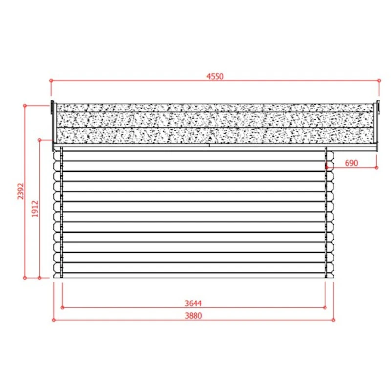 Cet abri est à installer sur dalle de béton, protégée de préférence de l’humidité du sol par une membrane d’étanchéité à poser sous la dalle. Le montage est simple et rapide, en suivant pas-à-pas la notice de montage qui détaille chaque étape avec des pièces identifiées clairement. Les parois sont constituées d’un assemblage de madriers solides épais de 28mm par rainures et languettes finement usinées, pour garantir une protection idéale contre l’eau ou le vent. Le système exclusif de connexion des parois entre elles Place&Plug en encoches situées aux extrémités des madriers assure une excellente stabilité structurelle, un montage aisé et d’équerre, tout en apportant une touche esthétique authentique.