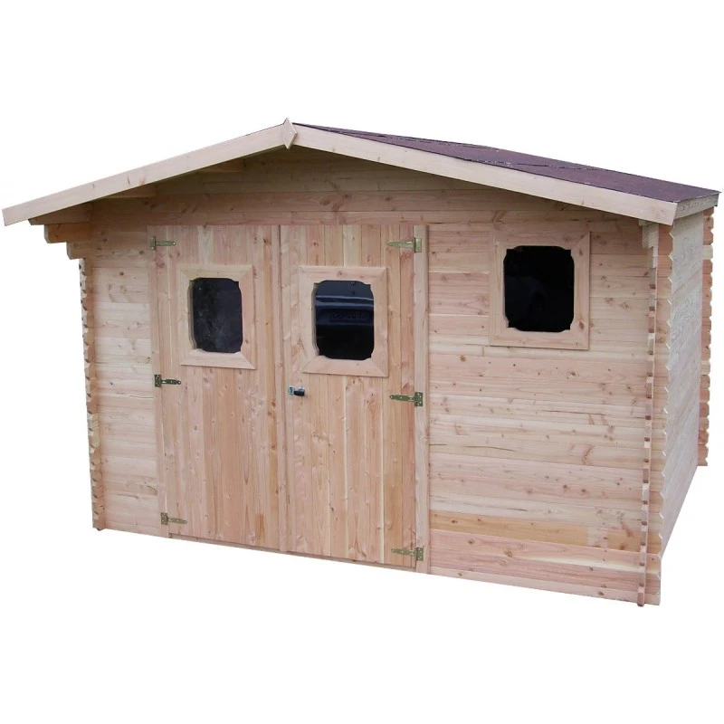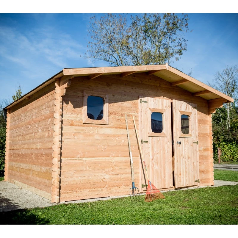 La hauteur faîtière de 2,42m sur des parois de 2,05m développe un beau volume utile, permettant de vous y déplacer en toute aisance et d’y ranger des objets volumineux. Le montage de cet abri se réalise facilement, les madriers robustes de 28mm d’épaisseur en Douglas massif, trié sans aubier, sont munis d’un système de rainures et languettes.