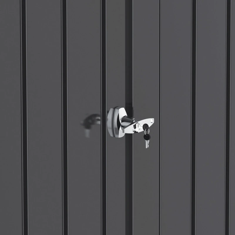 Robuste et d’une durabilité accrue, l’abri de jardin en métal 5,22m² Duramax mettra vos affaires en toute sécurité. La double-porte battante équipée d’une serrure cylindrique et de deux clés limitera fortement le risque d’invasions indésirables. Renforcée et doublée, elle bénéficie d’une épaisseur d’environ 33mm. L’ouverture et la fermeture sont très rapides et aisées puisque les vérins à gaz y sont disponibles. À l’arrière de l’abri, vous disposerez également d’une gouttière pour évacuer sans effort les eaux de pluie.
