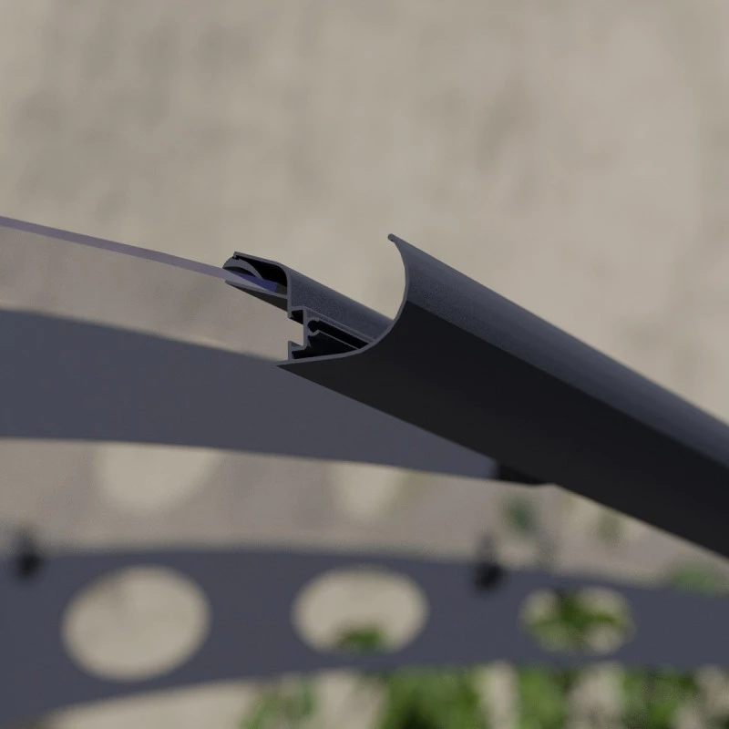 ● Gouttière intégrée en aluminium dirige l’eau de pluie vers les côtés