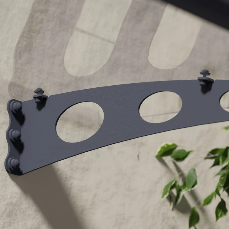 L’auvent marquise Garamond™ 1350 est un produit de haute qualité réalisé en matériaux durables ce qui présage une utilisation à long terme. Les bras de support sont en acier galvanisé découpé au laser avec une finition en poudre anti-rouille. Les panneaux de toit sont en polycarbonate épais de 3mm et traité anti-UV. Pratiquement incassables, ils sont transparents et ne se décolorent pas dans le temps.