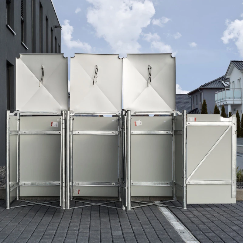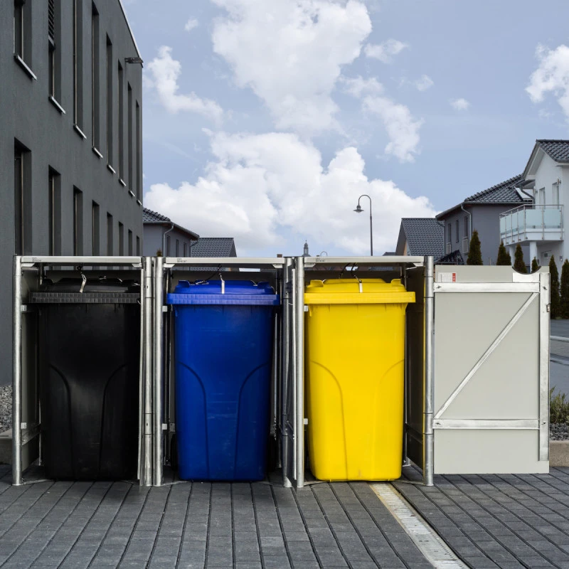 Avec ses 3 compartiments, le cache-poubelle Hide vous permettra de pratiquer un tri sélectif en un simple geste. Réalisé avec des matériaux de première qualité, ce cache-poubelle accueille 3 conteneurs à déchets d’un volume de 140L chacun. Le cadre est en acier galvanisé à chaud et les parois sont réalisées en aluminium composite, pour une durabilité et une solidité inégalées.