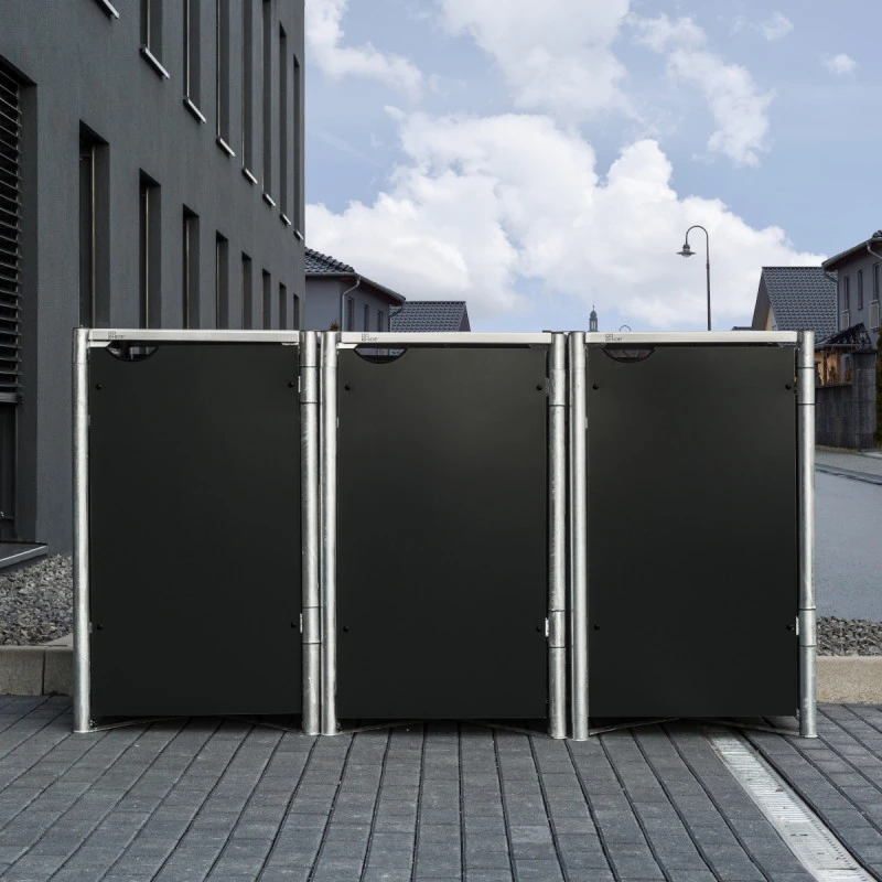 L’avis du spécialiste sur la cache-poubelle 3 compartiments Müllbox en aluminium noir 3x140L – HIDE
