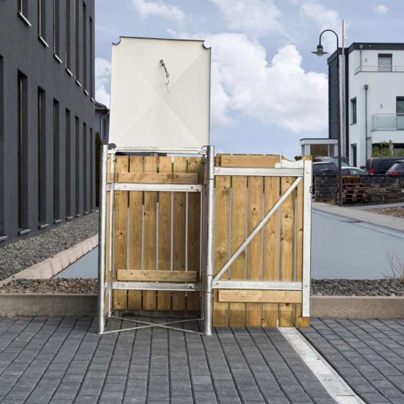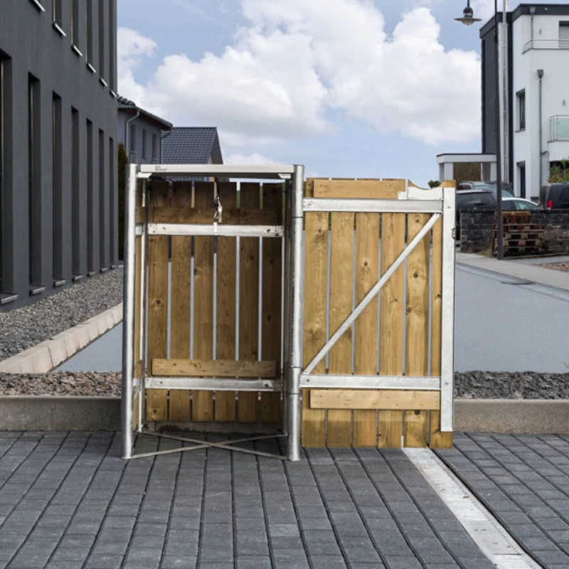 Avec son cadre en acier galvanisé à chaud et ses parois en planchettes de pin traité, ce cache-poubelles Hide est une solution qui mêle esthétisme et une grande fonctionnalité. L’aspect du bois naturel s’intègrera harmonieusement dans votre aménagement extérieur et les lignes épurées du cadre apportent une touche moderne et élégante. Ce modèle de dimensions 70x81x115cm est conçu pour accueillir un conteneur à poubelles de 240L.
