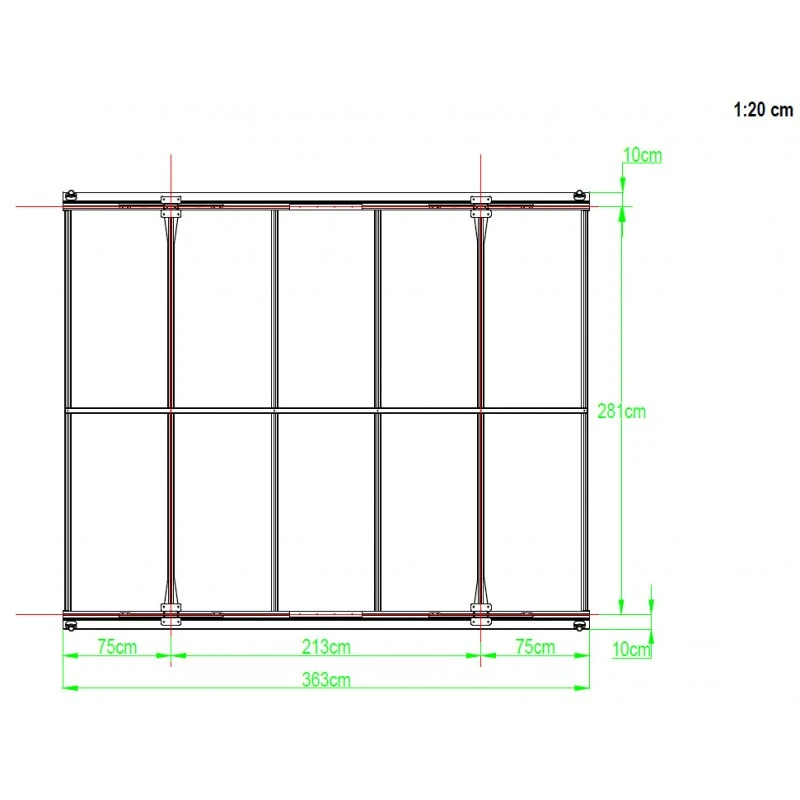 Ses poteaux de sections 10x4cm sont au nombre de 4 et supportent une couverture en polycarbonate alvéolaire de 6mm grise. L’aluminium de 1,2 à 1,5mm d’épaisseur selon les profilés est laqué anthracite pour qu’il s’intègre parfaitement dans votre environnement extérieur.