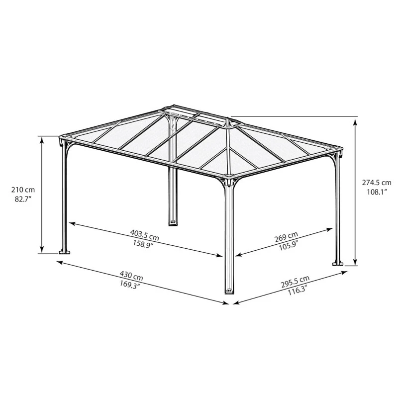 La pergola rectangulaire Martinique™ 4300 de Canopia by Palram deviendra vite votre endroit préféré ! Avec ses grandes dimensions, vous y passerez de beaux moments en famille, ou avec des amis.