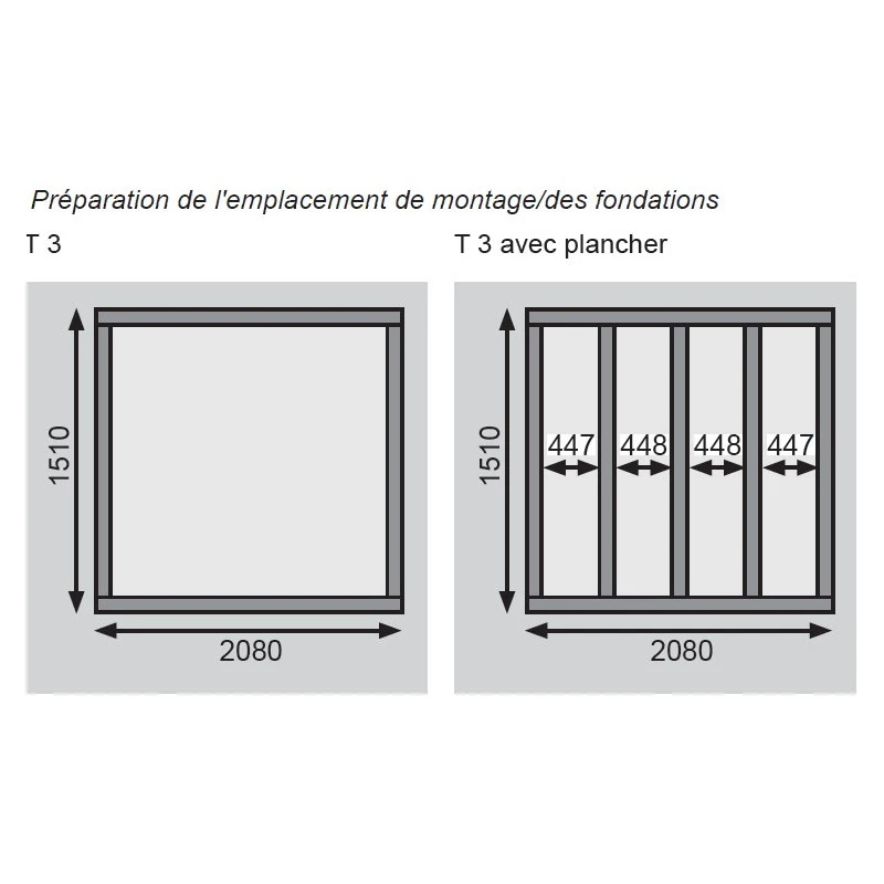 L’abri de jardin en bois Merseburg 3 a deux portes battantes, aménagées de fenêtres en plexiglas et de moraillon de sécurité qui séduisent par la simplicité de leur design. Le toit une pente est fait de voliges, épaisses de 16mm qui peuvent être recouvertes d’un feutre bitumé (en option). Le toit peut être allongé à gauche ou à droite grâce à la toiture d’extension, pour la réalisation d’un bûcher par exemple
