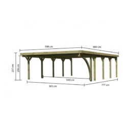 Carport Double En Bois Autoclave 50,9m², Toit En PVC Gris Et Deux Poteaux En Arc – KARIBU