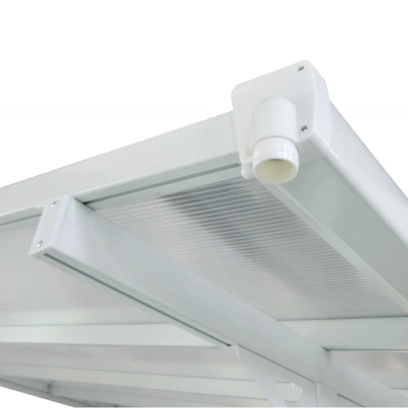 Les poteaux et la structure en aluminium laqué blanc sont garantis 10 ans contre la corrosion, et les panneaux de la toiture en polycarbonate transparent traité anti-UV apporteront une grande clarté, tout en vous protégeant du rayonnement solaire.